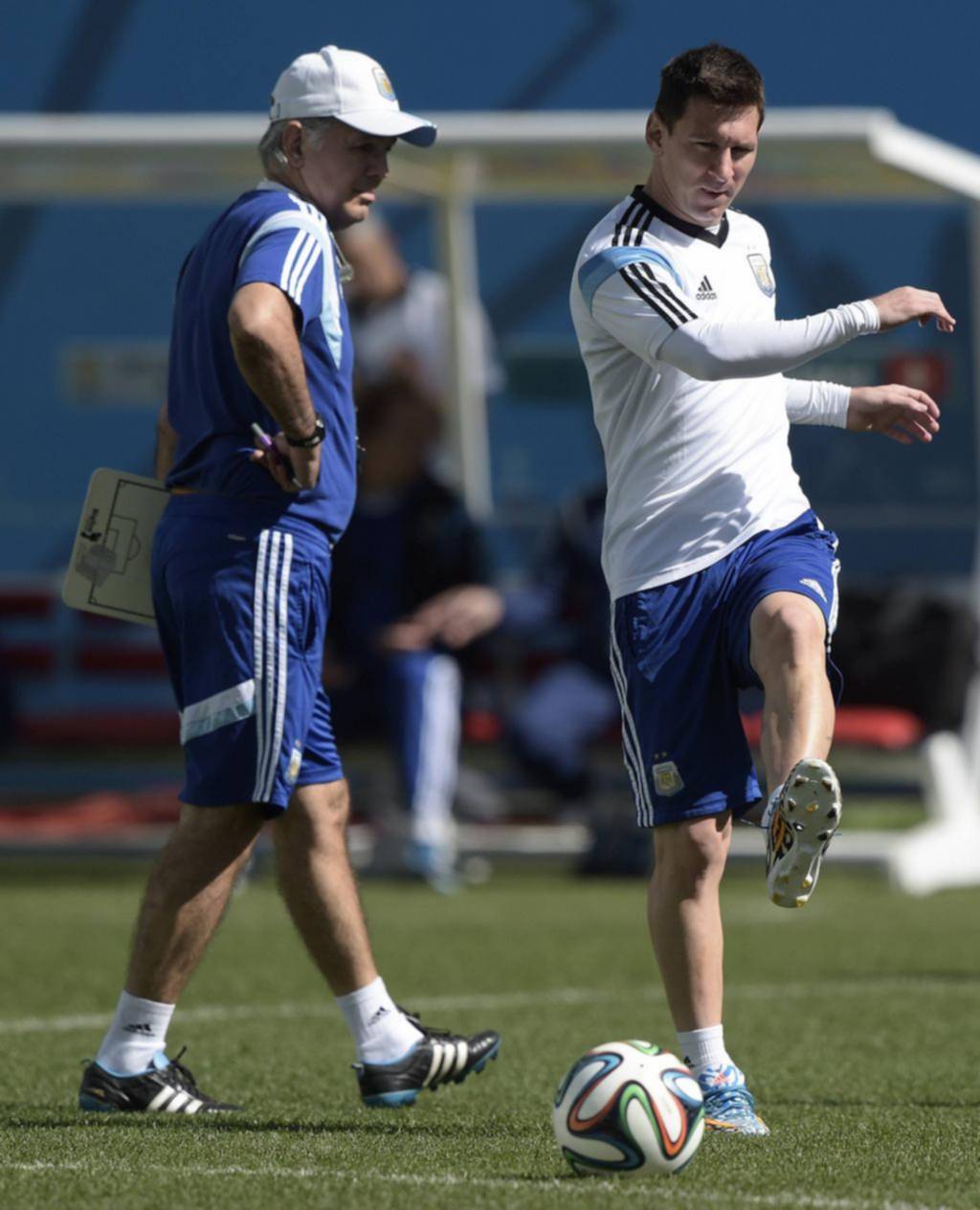 En la Selección durante un entrenamiento con Lionel Messi