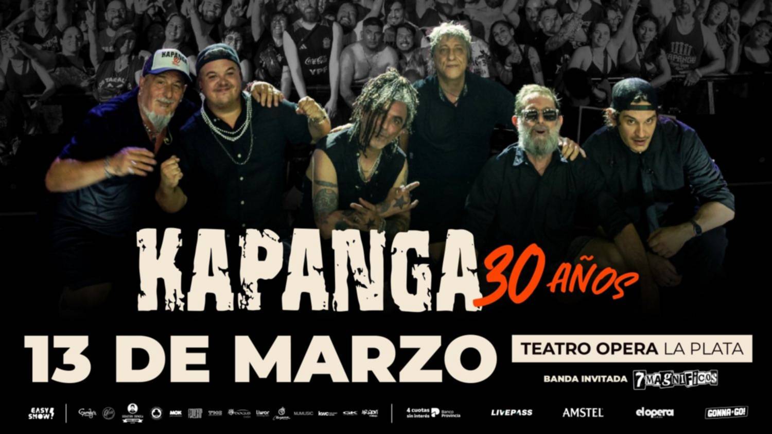 Con 30 años de historia, Kapanga se consolidó como una banda capaz de unir generaciones a través de un sonido propio que combina rock, cuarteto, ska y humor, transformando cada presentación en una verdadera fiesta colectiva. Este tour aniversario no solo celebra su recorrido musical, sino también el vínculo inquebrantable que construyeron con su público desde sus comienzos.