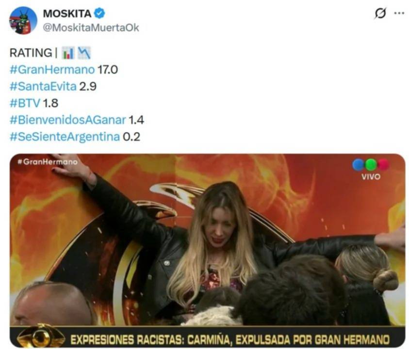 El lamentable episodio tuvo picos de 17 puntos de rating, convirtiéndose en uno de los segmentos más vistos del reality en los últimos días y generando una fuerte repercusión tanto dentro como fuera de la casa.