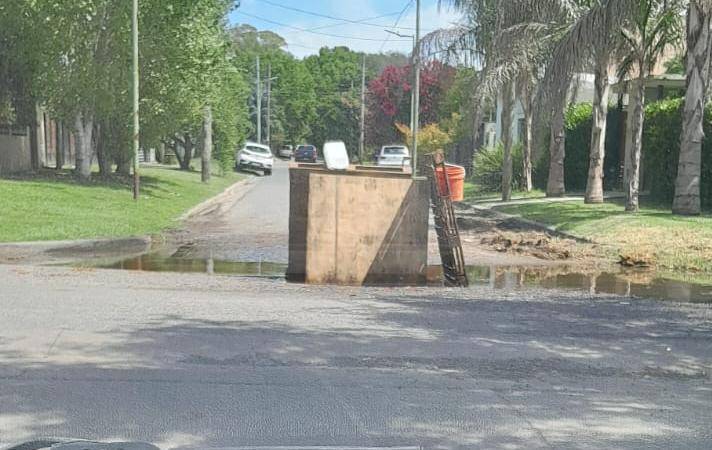 En calle 46 y 4 de Villa Elisa, los vecinos colocaron maderas, hierros y tarros para señalizar un pozo y una laguna que torna intransitable la esquina para los vehículos que circulan por el lugar. “Ya cumplió un mes y a pesar de los reclamos no nos dan una respuesta”, dijo un vecino que se comunicó con este diario.