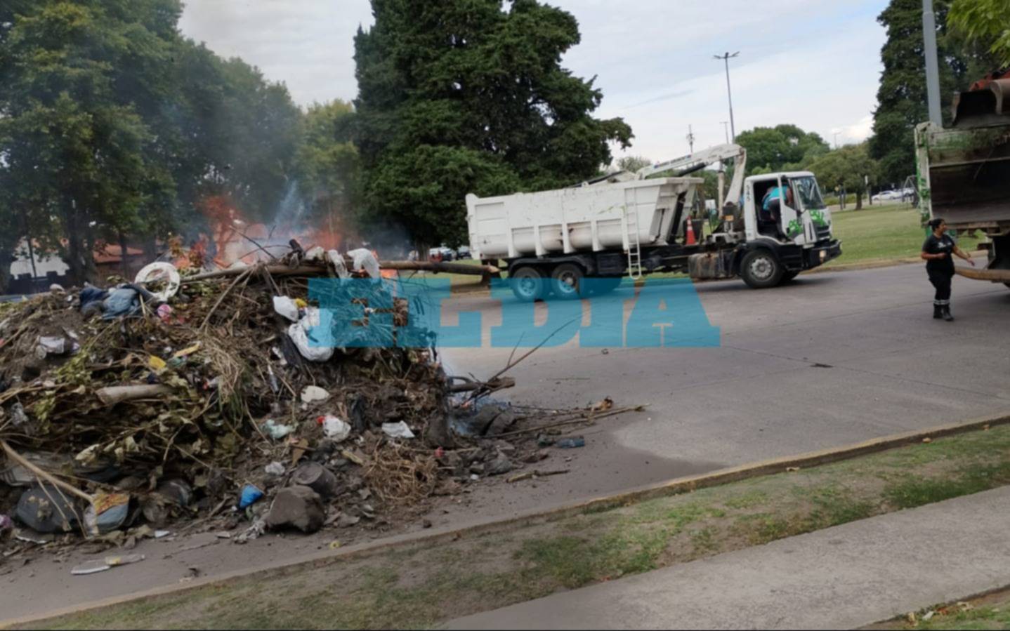 A raíz de lo sucedido quedó en plena avenida un enorme montículo de basura que poco después ardió en llamas, lo que generó humo y olores nauseabundos, de acuerdo con los relatos.