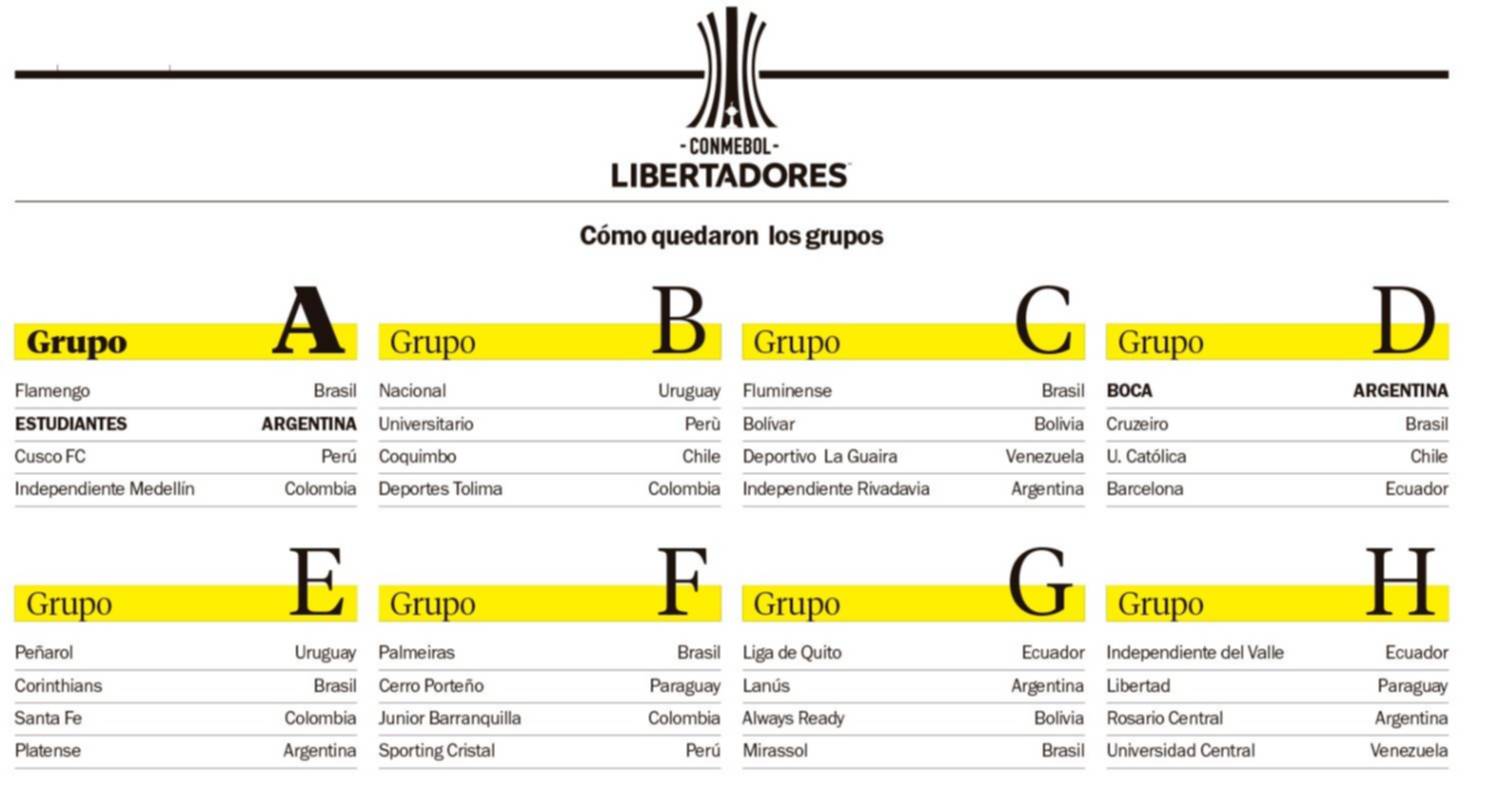 Después a Boca le tocó el Grupo D, con rivales complicados: enfrentará a Cruzeiro, Universidad Católica de Chile y Barcelona de Guayaquil. El estreno del Xeneize será ante el conjunto chileno.