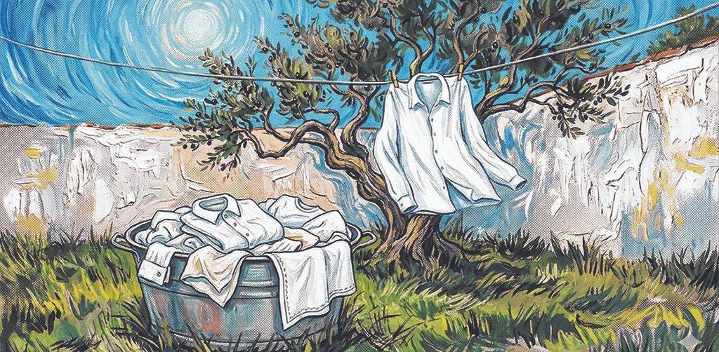 Sobre el pasto verde, dejé el fuentón de lata y empecé el rito de colgar la ropa blanca: pañales de Ana María; guardapolvo de Tere; camisetas de Ricardo, de Raúl; sábanas chicas de Luis; pañuelos de Adriana, de Dorita; medias de Armando; sábanas anchas de mis padres. Y en el fondo del fuentón, la camisa blanca de Andrés.