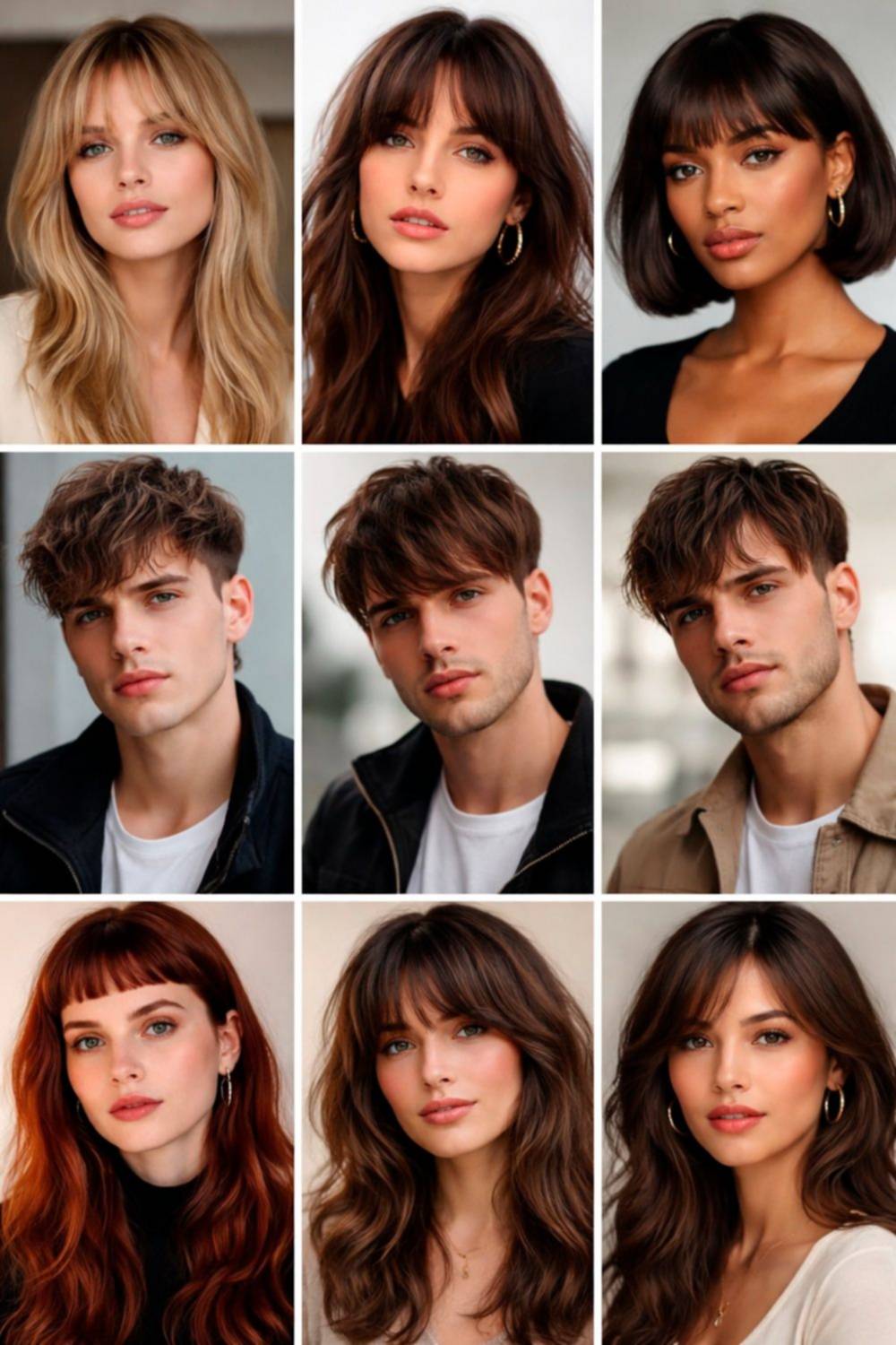 Lejos de ser exclusivo de la estética femenina, el flequillo también forma parte de numerosos cortes masculinos. En estilos contemporáneos como el “textured fringe” o en variantes de undercut con volumen frontal, el cabello sobre la frente se utiliza para equilibrar las proporciones del rostro o aportar dinamismo al corte.