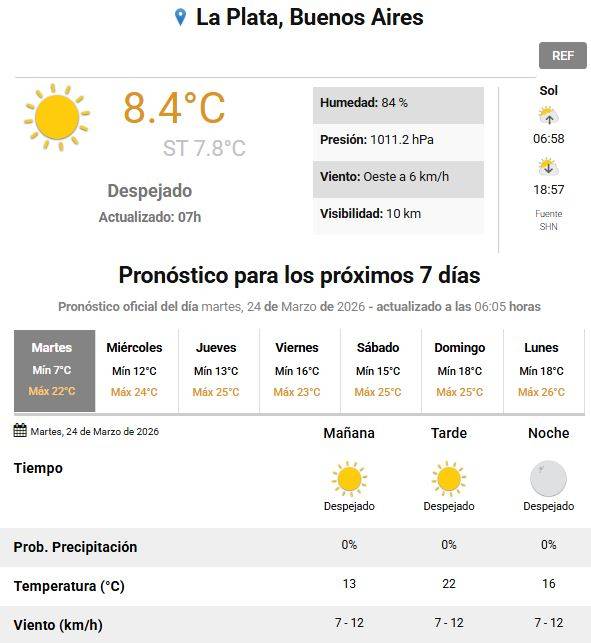 El martes se presenta en La Plata y alrededores más frío de lo esperado, con temperaturas más cercanas al invierno que al verano, que se acaba de ir. Para esta jornada de feriado, el Servicio Meteorológico Nacional (SMN) pronosticó cielo despejado, vientos leves y marcas de entre 7 y 22 grados.
