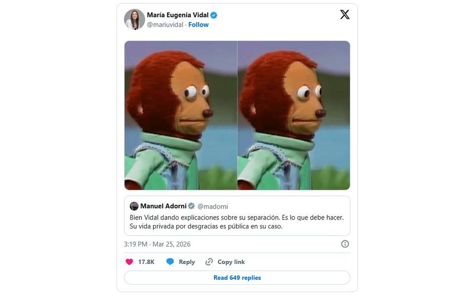 — María Eugenia Vidal (@mariuvidal) March 25, 2026