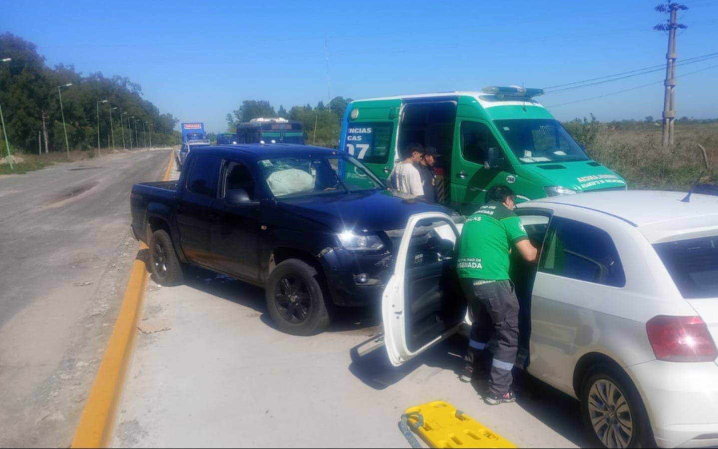 Según se pudo conocer, el incidente vial involucró a una camioneta Volkswagen Amarok color azul y a un Volkswagen Gol Trend color blanco. La colisión entre ambos vehículos fue frontal y se produjo en un sector en donde transitan provisoriamente por una única vía aquellos conductores que se dirigen de La Plata a Ensenada y desde allí hacia la Ciudad.