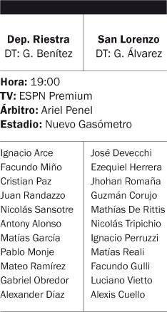 San Lorenzo visitará esta tarde/noche a Deportivo Riestra, en un partido que cerrará la fecha 12 del Torneo Apertura de la Liga Profesional de Fútbol y que estará marcado por el debut de Gustavo Álvarez como su director técnico.