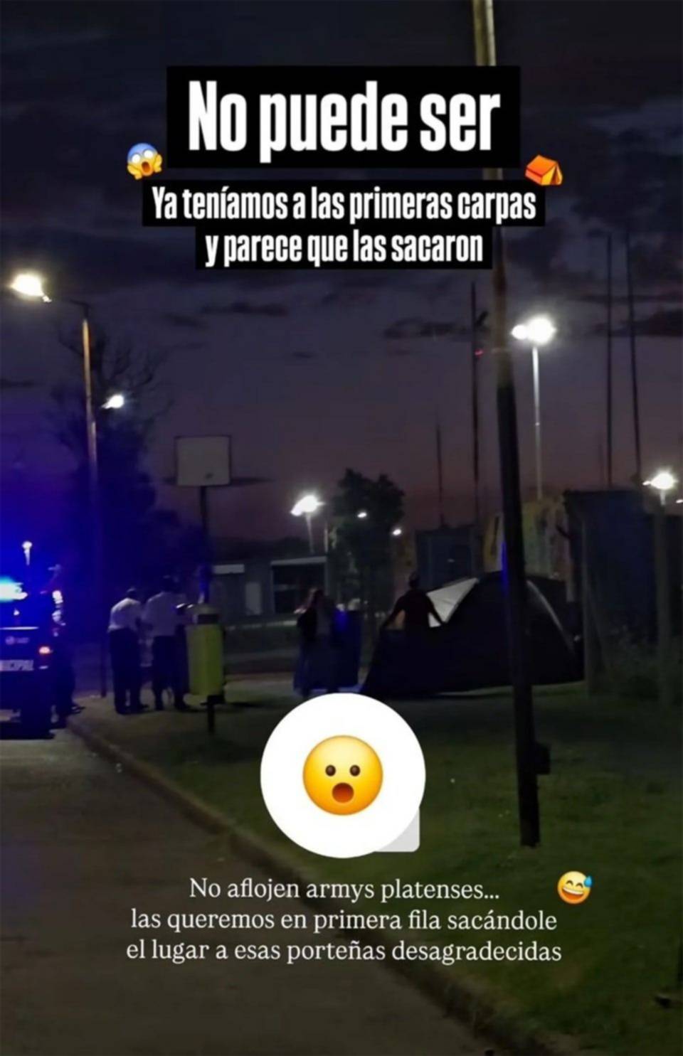 Sin embargo, la permanencia de los fans duró pocas horas. Durante la noche, personal de la Municipalidad de La Plata llevó adelante un operativo para desalojar a quienes se encontraban acampando en el lugar.