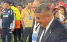 Su aparición, acercándose hasta el centro del campo de juego y presentado por la voz del estadio, motivó a una gran cantidad de gente a demostrar su disconformidad.