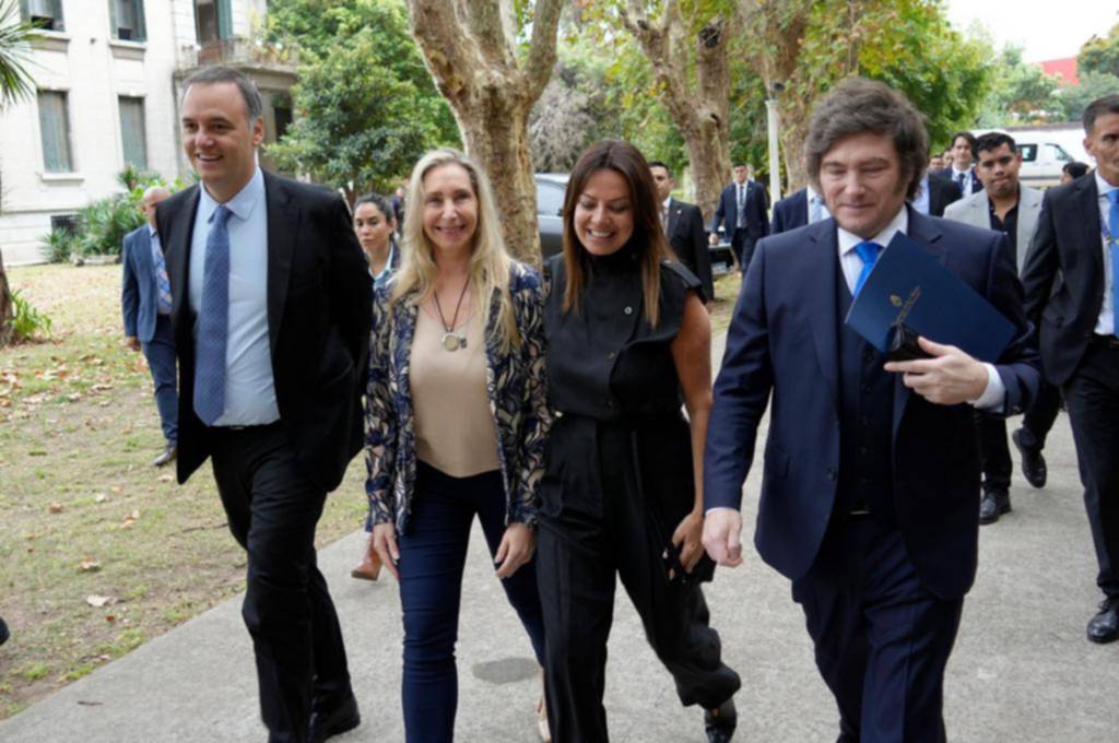Manuel Adorni con los Milei y Petovello en un acto el viernes en el ministerio de Capital Humano /NA