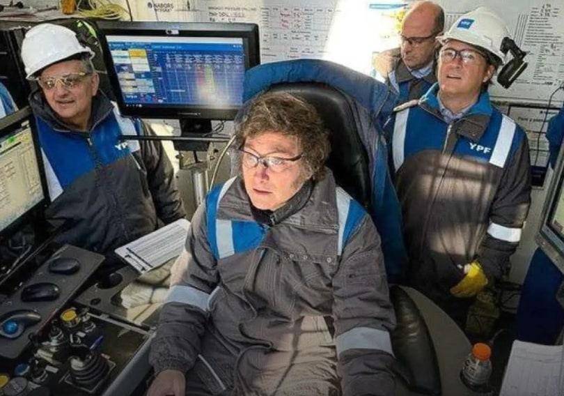 milei, en una de sus tantas apariciones con el mameluco de ypf/archivo