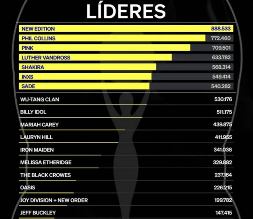 De esta forma, Shakira está en el puesto número cinco del chart, sobreponiéndose a otros grandes artistas como Mariah Carey, Oasis y Billy Idol.