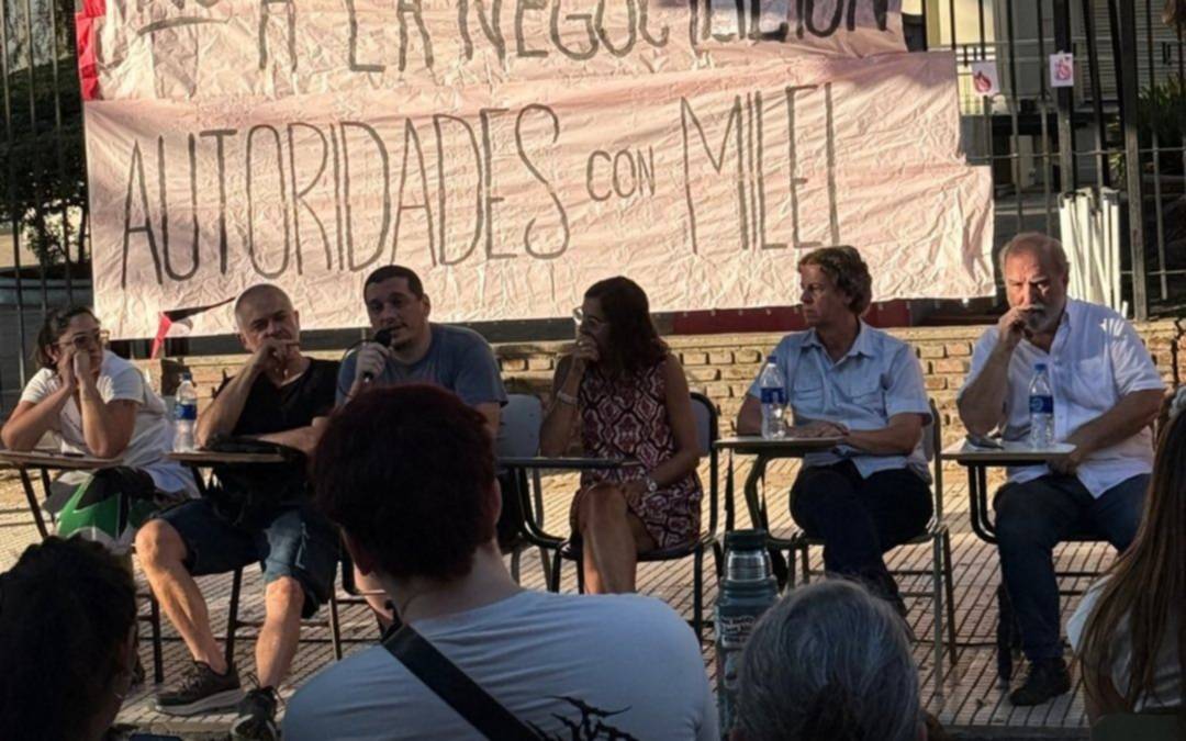 También formaron parte del encuentro Gabriel Fabricius, docente de Ciencias Exactas y delegado de ATE Conicet, y Rodolfo Sosa, docente de Ciencias Jurídicas, quienes aportaron distintas miradas sobre la crisis universitaria.