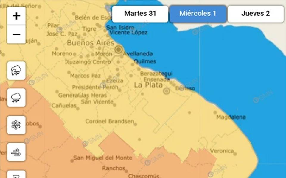El pronóstico del tiempo del Servicio Meteorológico Nacional (SMN), día por día
