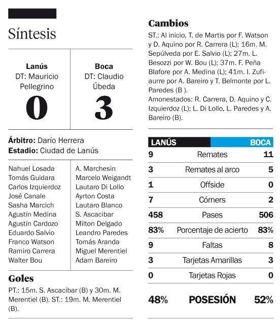 En su mejor producción futbolística en mucho tiempo, vapuleó por 3-0 a Lanús, el flamante campeón de la Recopa Sudamericana. El Rusito Ascacibar, con su primer grito, y doblete de Merentiel, los goles del Xeneize