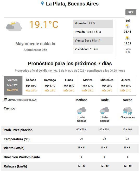 La semana inestable, con varios días que se presentaron nublados, finalmente termina con lluvias en La Plata y alrededores de acuerdo con el pronóstico del Servicio Meteorológico Nacional (SMN).