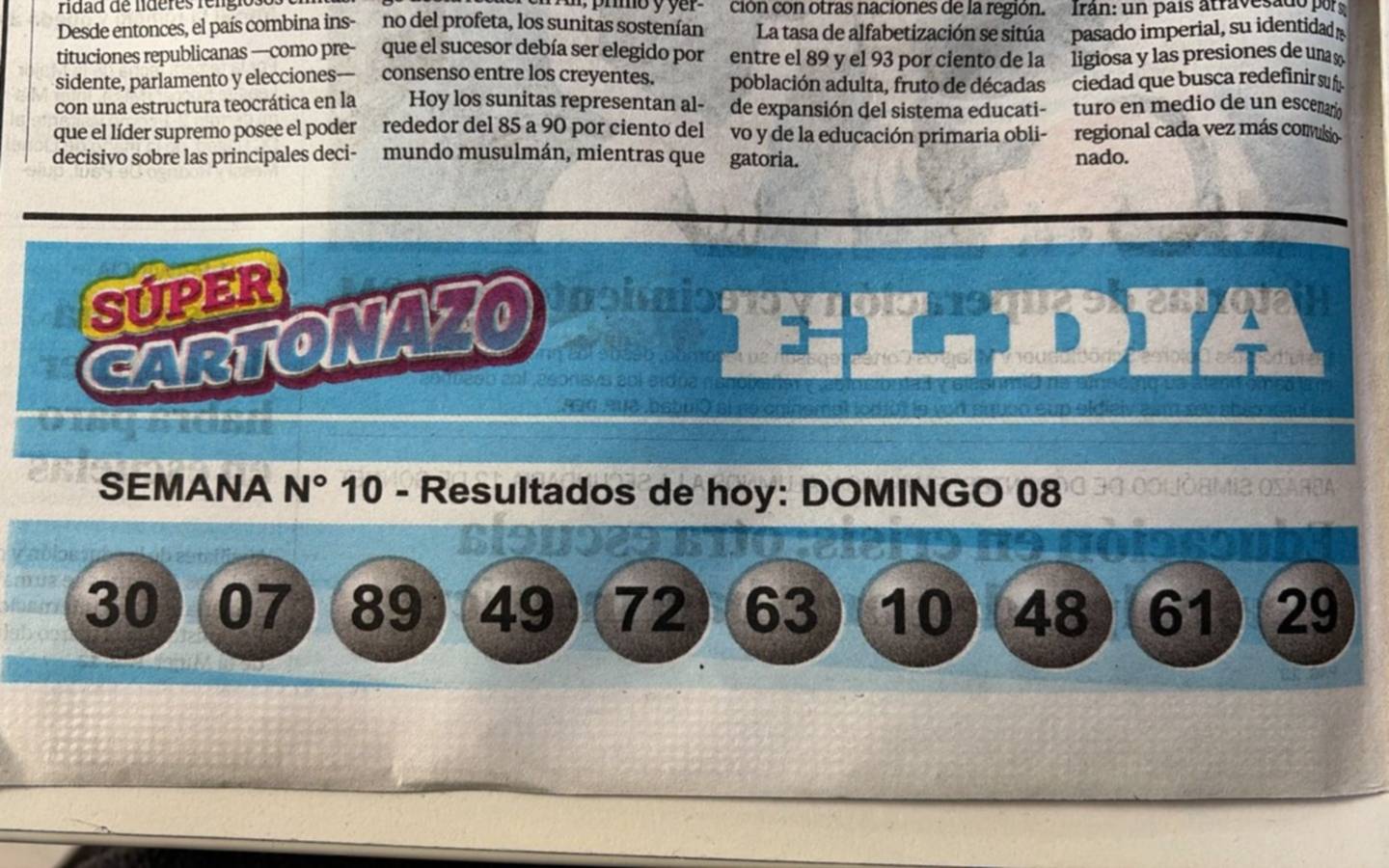 El Súper Cartonazo del diario EL DIA vuelve a jugarse por un pozo acumulado de $3.000.000 tras haber quedado vacante las dos rondas anteriores. Ayer, con la edición impresa de EL DIA, se entregó la tarjeta gratis, mientras que este viernes se conoció la primera tanda de números para jugar y ganar.