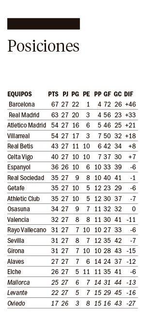 Villarreal abrió además una gran diferencia respecto al quinto, el Betis, que queda ahora a 11 puntos del equipo amarillo.
