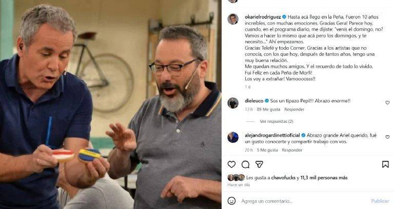 Por su parte, sus excompañeros lo saludaron con emotivos mensajes de despedida. “Sos un tipazo, Pepi. Abrazo enorme”, escribió Diego Leuco. Abrazo grande, Ariel querido. Fue un gusto conocerte y compartir trabajo con vos”, agregó Alejandro Grandinetti, y Santiago Giorgini le escribió: “Pepi, querido…La Peña te va a extrañar”.