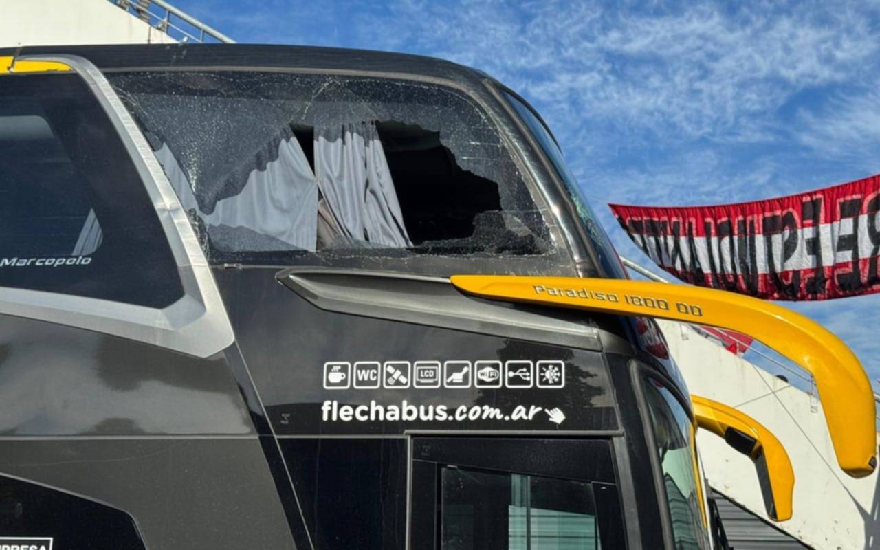 El micro que trasladaba al plantel de Estudiantes sufrió un incidente este sábado cuando salía del country de City Bell y arribó al estadio UNO con uno de sus vidrios laterales dañados.