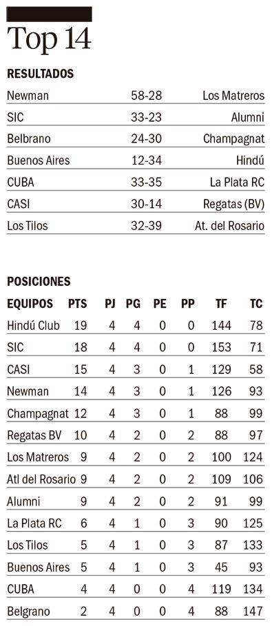 En tanto que Los Tilos no tuvo un sábado feliz en barrio Obrero, ya que perdió 39-32 ante Atlético del Rosario, partido que siempre le fue esquivo porque el rival mostró un gran manejo de la pelota, siempre empujado por su fullback Manuel Nogués.