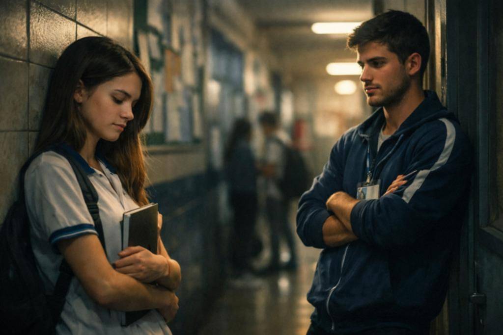 Él es preceptor. Ella, alumna. Aunque la diferencia de edad sea mínima y aunque ambos sean mayores de edad, el vínculo institucional establece una línea que no se puede ignorar. Y él lo sabe. Lo siente en cada decisión, en cada palabra que elige o que calla.