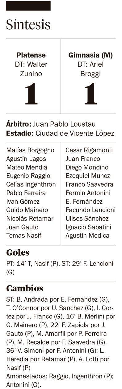 Platense empató 1-1 como local ante Gimnasia de Mendoza, por la decimocuarta fecha de la Zona A del Torneo Apertura, y llegó a los nueve partidos sin ganar entre todas las competencias.