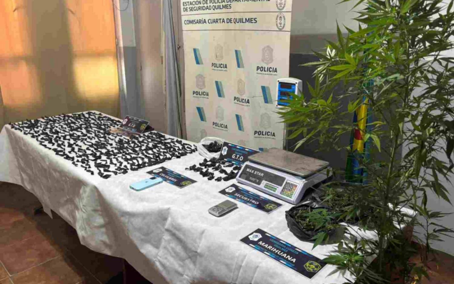 Durante la requisa de los inmuebles, los uniformados procedieron al secuestro de una cantidad significativa de dosis de cocaína y marihuana, las cuales ya se encontraban fraccionadas y acondicionadas para su distribución inmediata. Asimismo, entre los elementos incautados se hallaron balanzas de precisión y diversas herramientas utilizadas para el corte y fraccionamiento de las sustancias, lo que refuerza la hipótesis judicial sobre la actividad ilícita que se desarrollaba en el lugar.