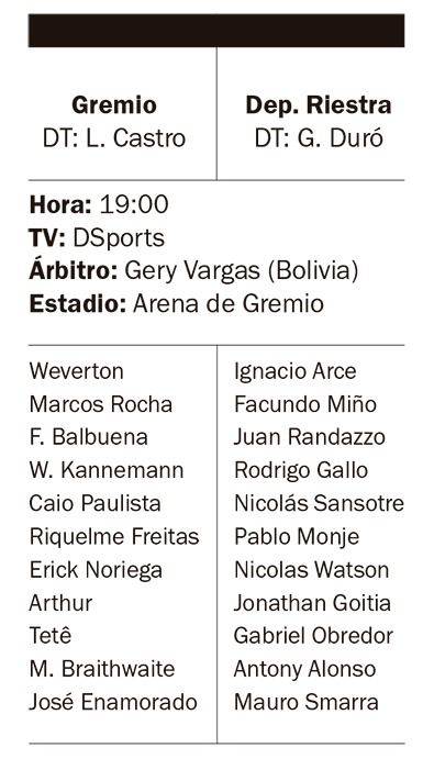 Deportivo Riestra, que se encuentra en una grave crisis futbolística, ya que aún no pudo ganar en el torneo doméstico, y se ubica último en el Grupo A con apenas 7 puntos, tendrá hoy una durísima visita, cuando se enfrente con Gremio de Brasil por la segunda fecha del Grupo F de la Copa Sudamericana.