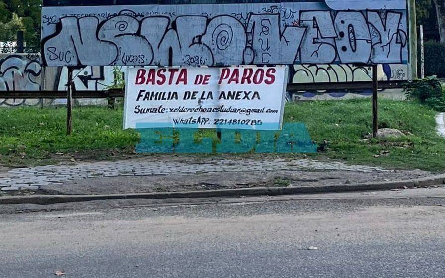 En alusión a la aparición de pasacalles en las cercanías del edificio del 50 y 116 que dicen "basta de paros", ADULP calificó de "firma abstracta" la denominación "Padres de la Anexa" empleada para rubricar esas expresiones en la vía pública.