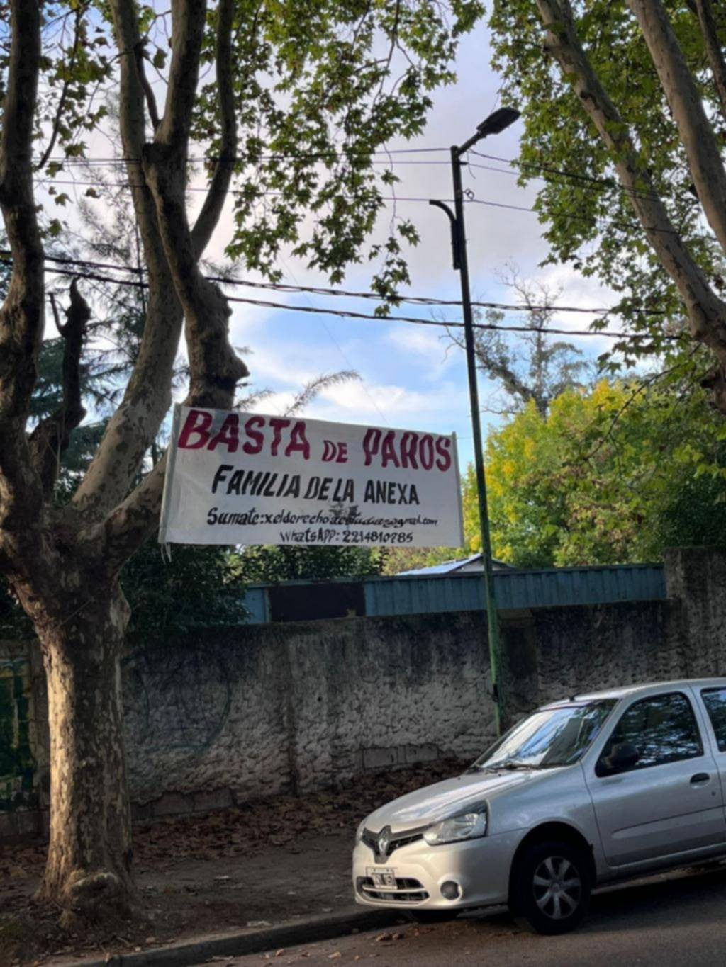 Los paros también generan controversia hacia el interior de la UNLP. En la Escuela Anexa, un grupo de padres decidió exteriorizar su hartazgo colgando pasacalles con la leyenda “basta de paros”, argumentando que el derecho a la educación de sus hijos se ve vulnerado de forma sistemática. Según trascendió, proyectan presentar una acción de amparo ante la Justicia para forzar el regreso a las aulas.