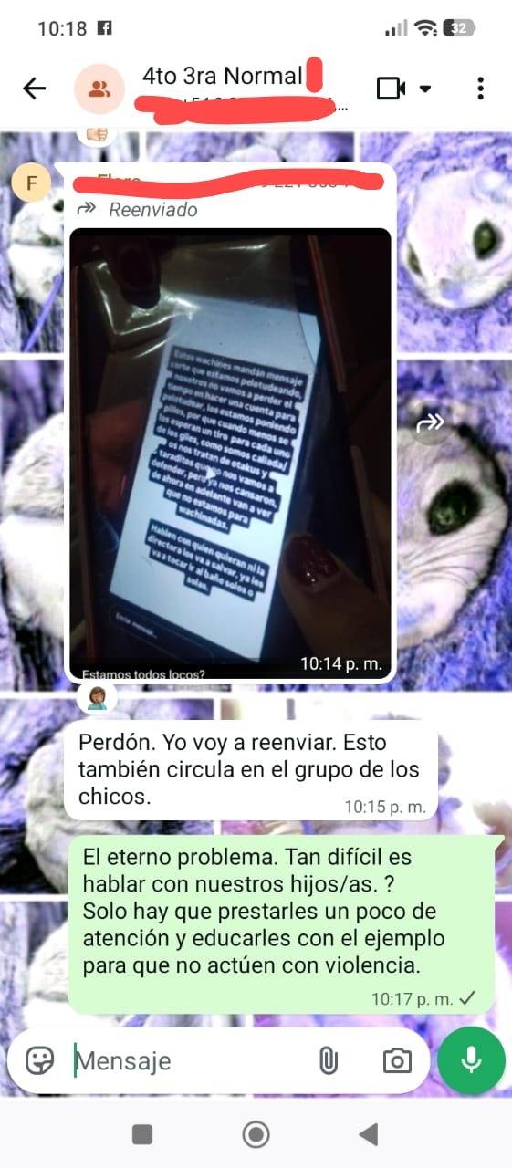 En paralelo, directivos de escuelas de la región buscaron llevar calma a las familias y al personal docente. En un mensaje interno, señalaron: “En principio llevarles tranquilidad respecto a esas inscripciones en baños en donde hablan de tiroteo. Aparentemente es un reto viral entre los chicos, pero vamos a trabajar en el tema y hablar con todos para que entiendan la gravedad”. En esa línea, advirtieron que “una broma así puede terminar en una denuncia por intimidación pública, y muchos alumnos ya son imputables”, al tiempo que pidieron reforzar controles internos, como restringir el acceso a baños y supervisar los recreos.