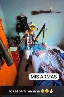 Poco después del hallazgo, comenzó a circular la fotografía de uno de los estudiantes empuñando las réplicas junto a las frases "Mis armas" y "Los espero mañana". En el fondo de la captura se observaba un chaleco táctico y lo que parecía ser un rifle de aire comprimido, lo que activó de inmediato las alarmas de padres y directivos.