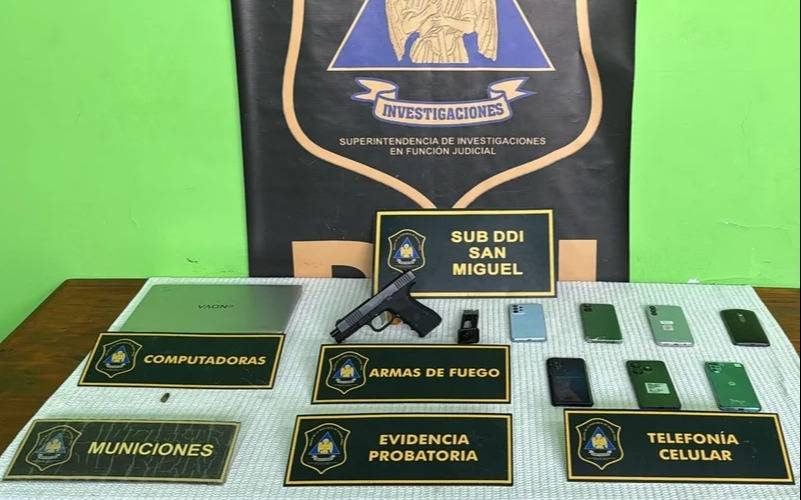 El procedimiento se efectuó, se halló al involucrado junto a su familia, mientras que agentes de la DDI San Martín y SUB DDI San Miguel secuestraron siete celulares, una pistola de gas comprimido marca Fox calibre 4,5 -réplica de la calibre 9 milímetros-, una notebook y una munición de fabricación nacional FLB calibre 9 milímetros troncocónica que estaba percutada sin haberse disparado.