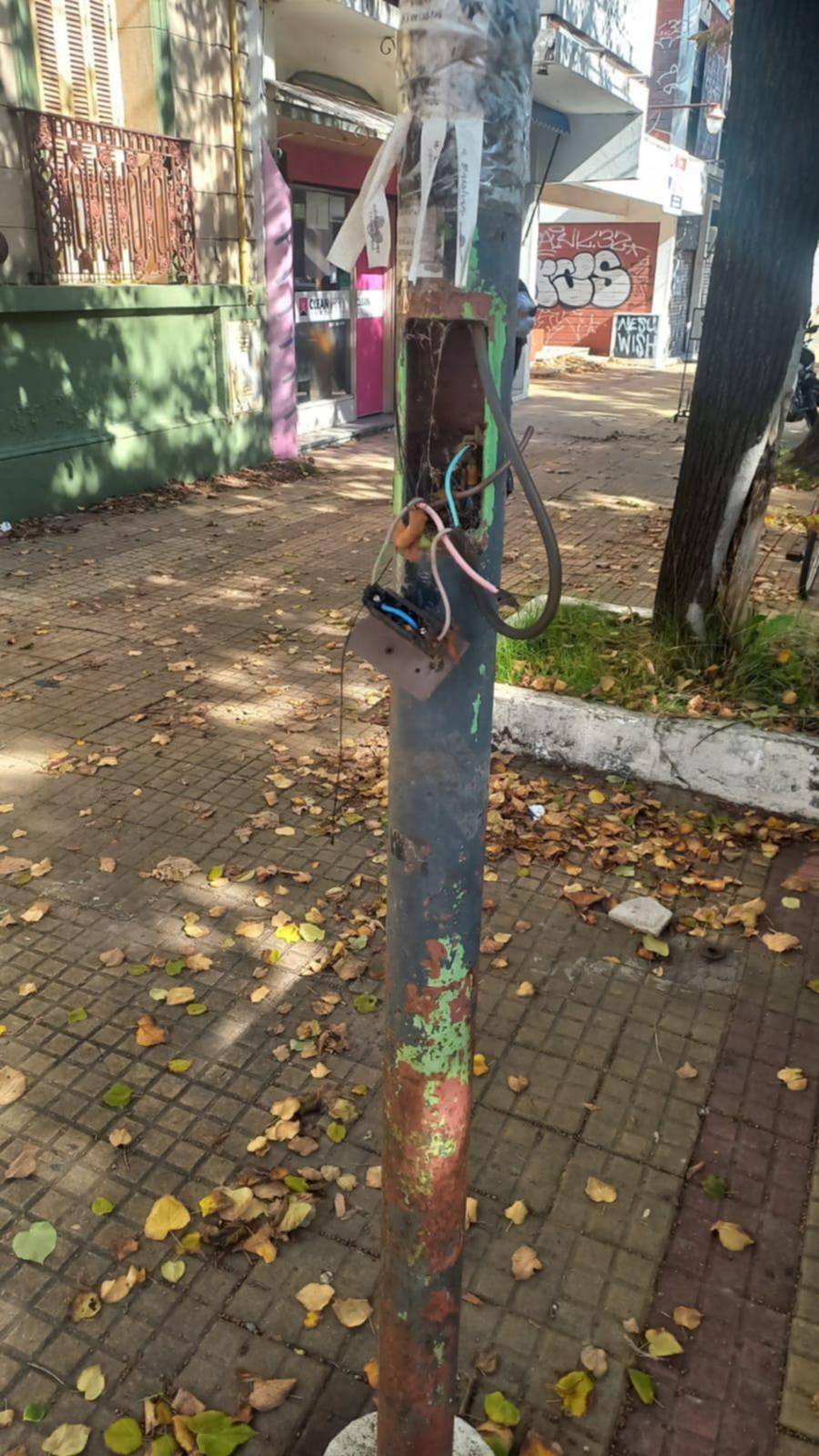 Un vecino denunció el estado de un poste de alumbrado público que se encuentra sin protección en calle 48 N° 1.034, entre 16 y diagonal 73. Señaló que falta la tapa de la caja de control del equipo y los cables quedaron expuestos, lo que representa un riesgo. Así, solicitó una intervención urgente para evitar accidentes.