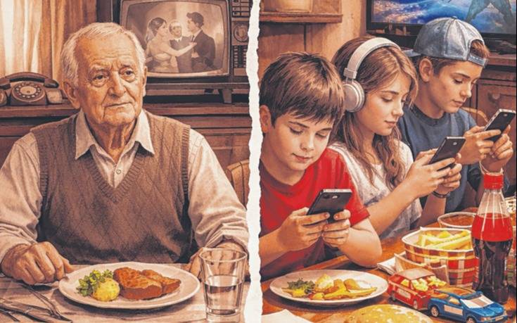 Cuentan que se tenían que sentar lo mas correctamente posible, con las manos bien lavadas y no levantarse permanentemente. Ni soñar comer parados, sacarse los zapato y andar descalzos. Todo estaba bárbaro. Bien ordenado y bien prolijo. Pero los tiempos cambiaron. Lo tienen que entender. Ahora, lo que los abuelos no registran es lo siguiente: si nos sentamos como estatuas, si apagamos el televisor y no ponemos los codos en la mesa, ¿cómo hacemos para sostener el teléfono celular mientras comemos?