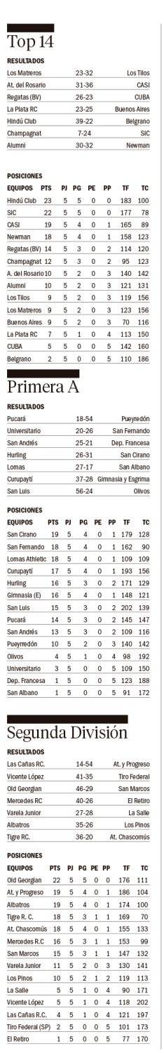Tantos: PT 5’ Try M. De la Fuente convertido por T. Suárez Folch (LP); 8’ Try B. Handley (BA); 13’ Penal T. Suárez Folch (LP); 25’ Try N. Chiappani convertido por T. Suárez Folch (LP); 34’ Try L. Prieto convertido por T. Bunge (BA); 40’ Try P. Bourdal convertido por T. Bunge (BA). Parcial: La Plata 17 - Buenos Aires 19. ST. 3’ Penal T. Suárez Folch (LP); 25’ Penal T. Suárez Folch (LP); 29’ Penal T. Bunge (BA); 32’ Penal T. Bunge (BA).
