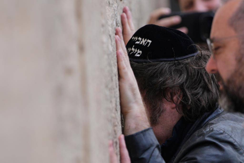 El presidente Javier Milei rezando en el Muro de los Lamentos