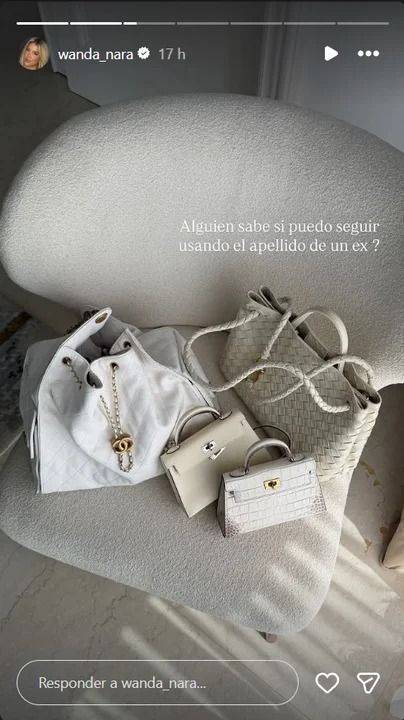 Sin embargo, la imagen que causó revuelo fue la de sus carteras, con una insólita pregunta a sus seguidores. “¿Alguien sabe si puedo seguir usando el apellido de un ex?”, escribió la mediática, en alusión a Mauro Icardi.