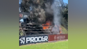 VIDEO.- Incendio en el Club San Luis: se prendió fuego la tribuna de la cancha principal de rugby