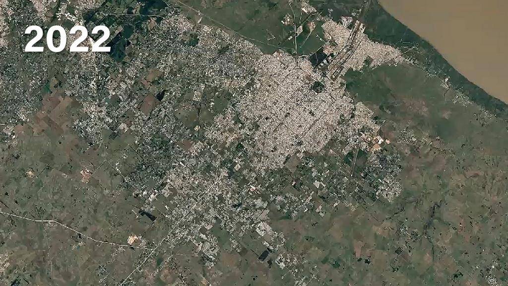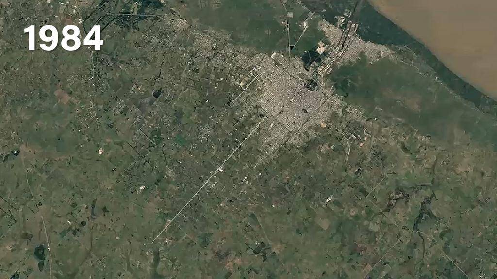 El contraste entre una imagen satelital tomada en 1984 y su equivalente de 2022. Una muestra clara sobre cómo creció y se expandió la región / web