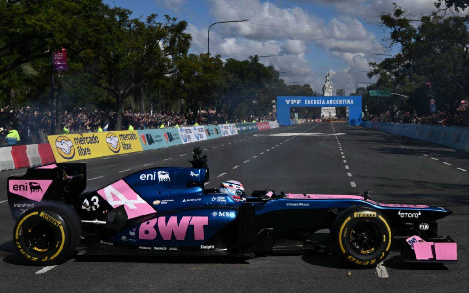 Durante el día, Colapinto realizará cuatro apariciones en pista, en un trazado que recorre la zona de Libertador, Sarmiento y alrededores del Monumento a los Españoles, con miles de personas siguiendo cada pasada desde distintos puntos estratégicos.