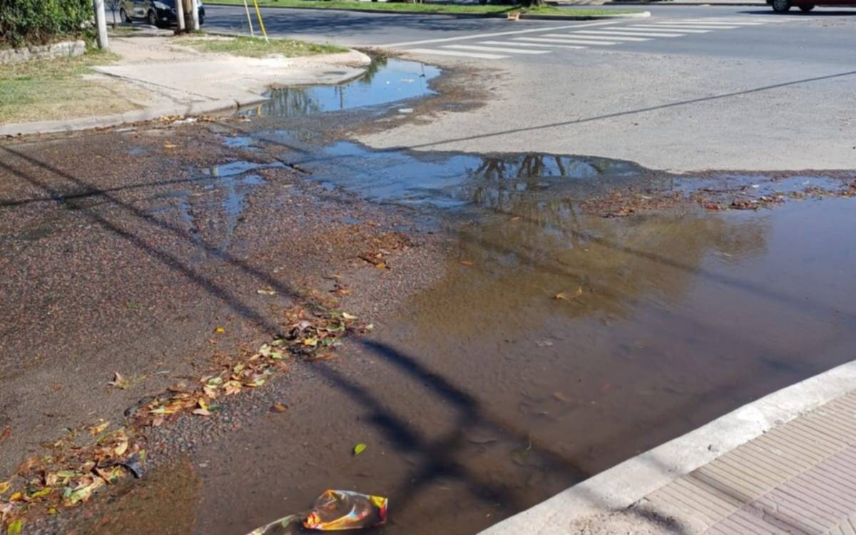Según describieron, la filtración afecta a "los dos lados de la esquina perdida" y a raíz de la presencia de líquido sobre la calzada vehicular "la gente ya no puede cruzar la calle".