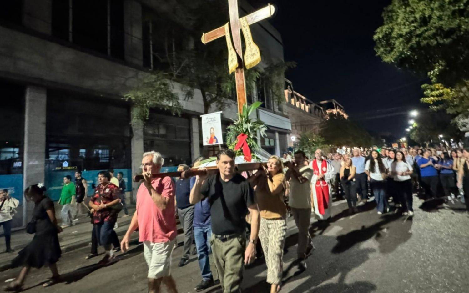 Cientos de fieles se congregaron ayer con devoción para participar del tradicional Vía Crucis del Viernes Santo, una de las celebraciones más emblemáticas de la Semana Santa en la Ciudad.