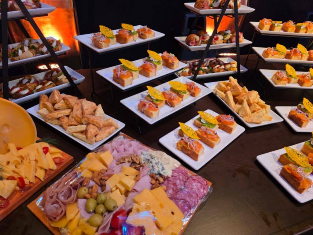 A su lado, aparecieron variantes con palta, queso y finas hierbas, coronadas con hojas de lima que sumaron un perfume cítrico sutil. Los mini croissants, rellenos con jamón crudo y bocconcino, aportaron un guiño a la tradición francesa, mientras que su versión vegetariana amplió la experiencia sin perder sofisticación.