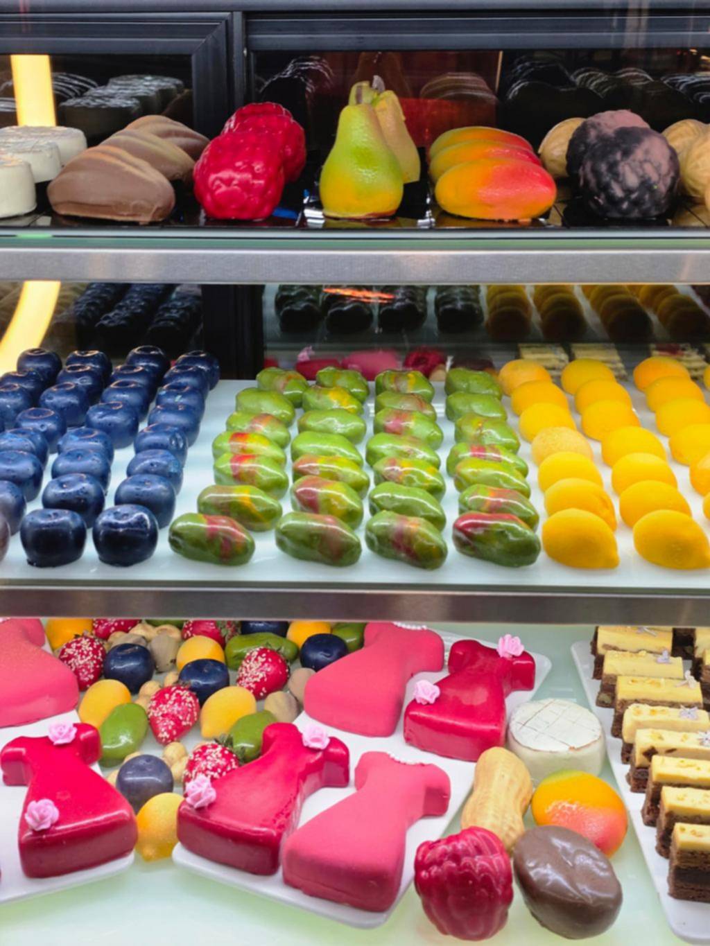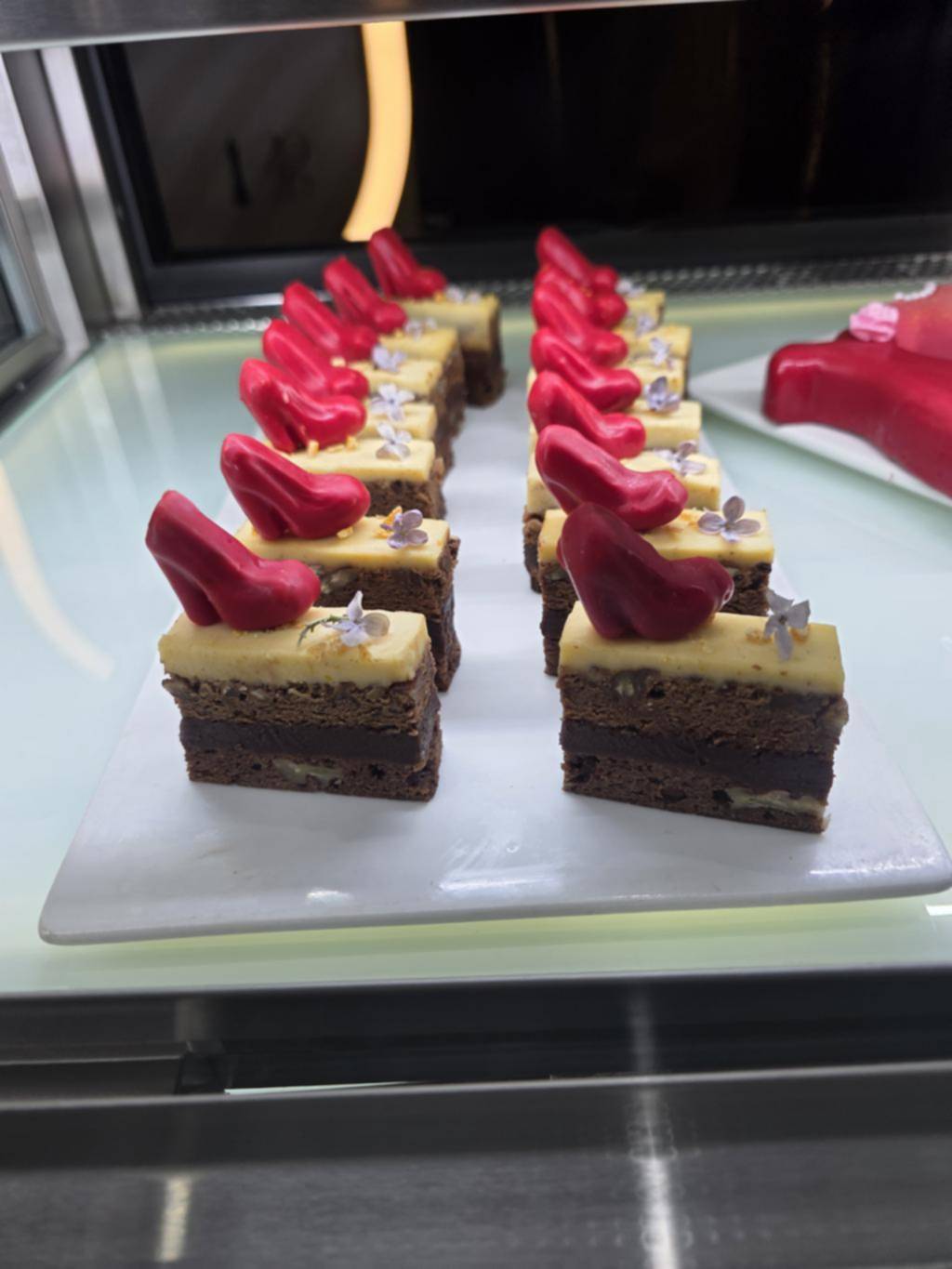 La línea de frutos secos, con maní y avellana, se trabajó bajo la técnica del trompe l’fœil, logrando piezas que parecieron naturales pero escondieron una complejidad técnica notable, en un guiño al estilo del reconocido pastelero francés Cédric Grolet.