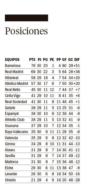 En otros partidos, Real Sociedad le ganó 2-0 a Levante, y Real Betis igualó sin goles ante Espanyol.