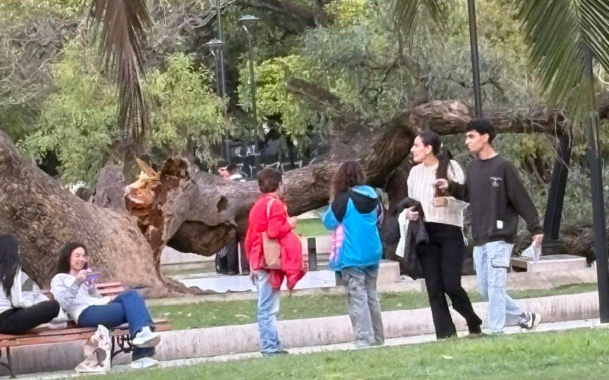Ocurrió alrededor de las 16.30 hs, en pleno horario de salida de las escuelas y con importante movimiento en Plaza San Martín. Según indicaron los testigos, el ejemplar “casi se le cae encima a dos personas pero por suerte no pasó a mayores. Enseguida llegó ‘Tito’”, en referencia al vehículo eléctrico del espacio verde.