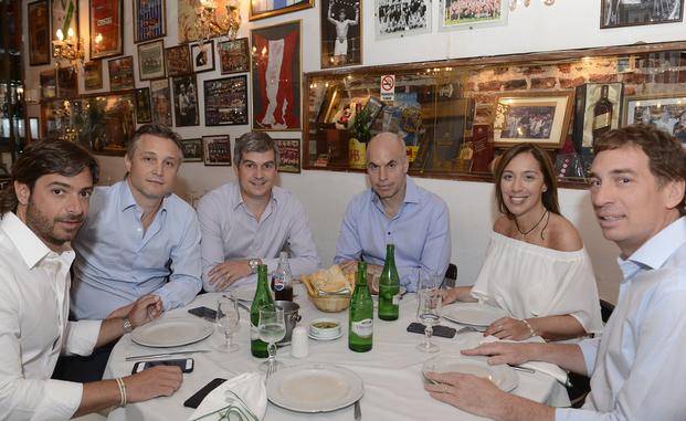 La gobernadora Vidal, Marcos Peña y Rodríguez Larreta, junto a Federico Salvai, Diego Santilli y Fernando De Andreis. La estrategia electoral de Cambiemos, en pleno debate